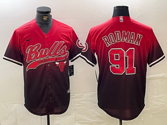 - Men Chicago Bulls 33 Scottie Pippen Red With Patch Cool Base Stitched Baseball Jersey