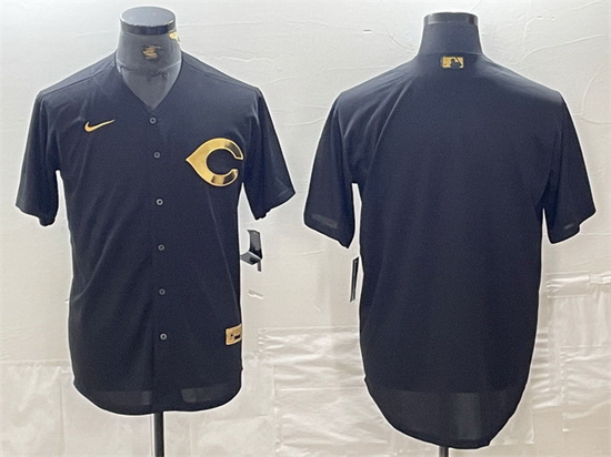 - Men Cincinnati Reds Black Team Big Logo Cool Base Stitched Baseball Jersey 3