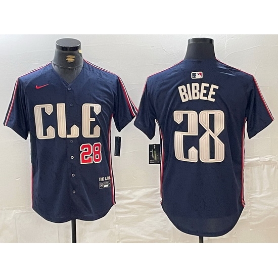 - Men Cleveland Guardians 28 Tanner Bibee Navy 2024 City Connect Limited Stitched jerseys 2