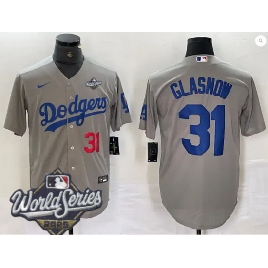 Men Los Angeles Dodgers 31 Tyler Glasnow 2025 World Series Cool Base Stitched Baseball Jersey Gray