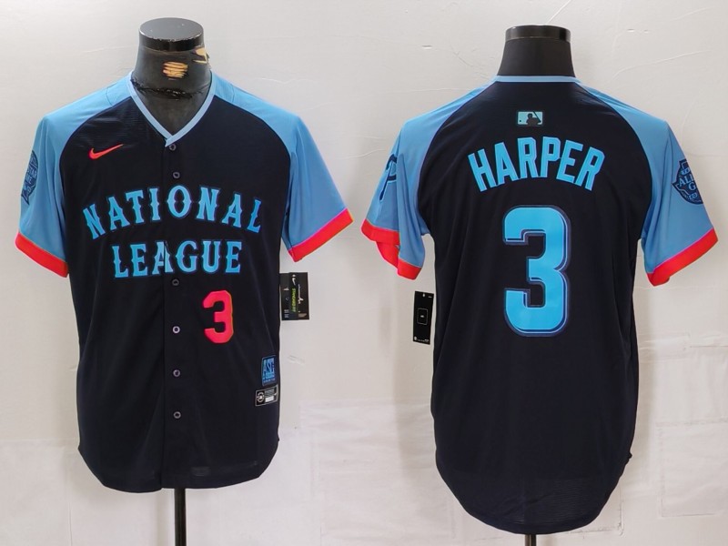 - Men National League 28 Alec Bohm Navy 2024 All Star Limited Stitched Baseball Jersey 8