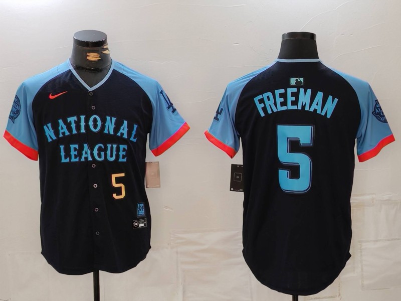- Men National League 7 Trea Turner Navy 2024 All Star Limited Stitched Baseball Jersey 3