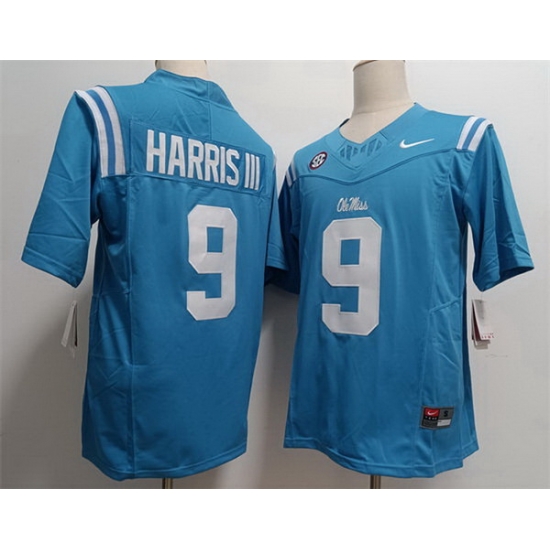 - Men Ole Miss Rebels #9 Tre Harris III Light Blue Stitched NCAA Jersey
