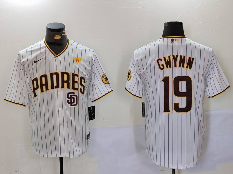 - Men San Diego Padres 19 19 Tony Gwynn White Cool Base Stitched Baseball Jersey