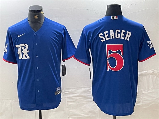 - Men Texas Rangers 5 Corey Seager Blue With Patch Cool Base Stitched MLB Jersey