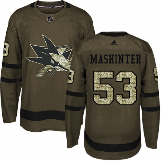 - Mens Adidas San Jose Sharks 88 Brent Burns Authentic Green Salute to Service NHL Jersey