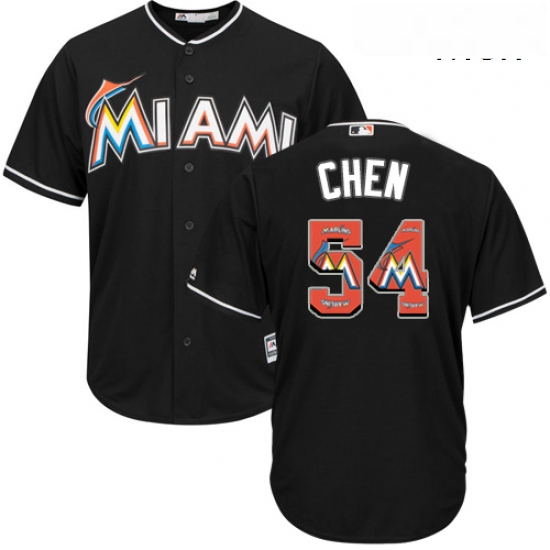 - Mens Majestic Miami Marlins 54 Wei Yin Chen Replica Green Salute to Service MLB Jersey