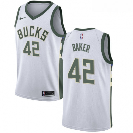 - Mens Nike Milwaukee Bucks 42 Vin Baker Swingman Cream NBA Jersey City Edition