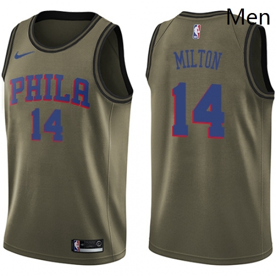 - Mens Philadelphia 76ers 18 Shake Milton Swingman Green Salute to Service Basketball Jersey