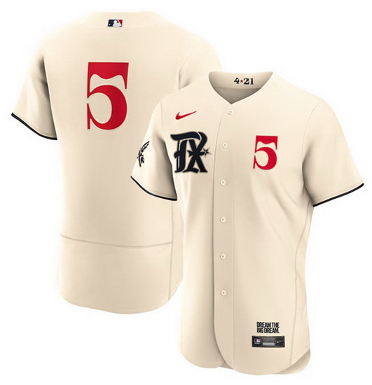 - Men's Texas Rangers #5 Corey Seager Number Cream 2023 City Connect Stitched Baseball Jersey