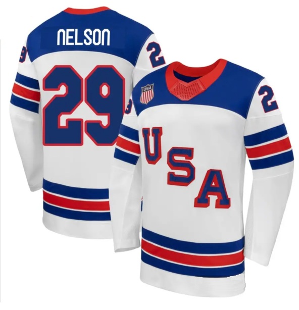 - Men's USA #29 BROCK NELSON Blue 2026 Stitched Jersey