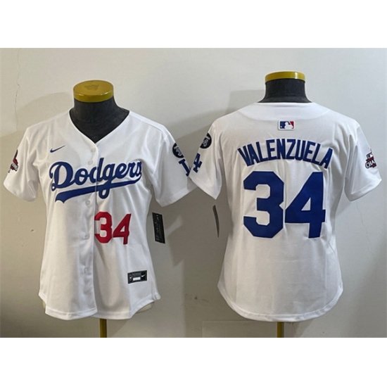 - Women Los Angeles Dodgers 34 Fernando Valenzuela Authentic Collection Stitched MLB Jersey 1