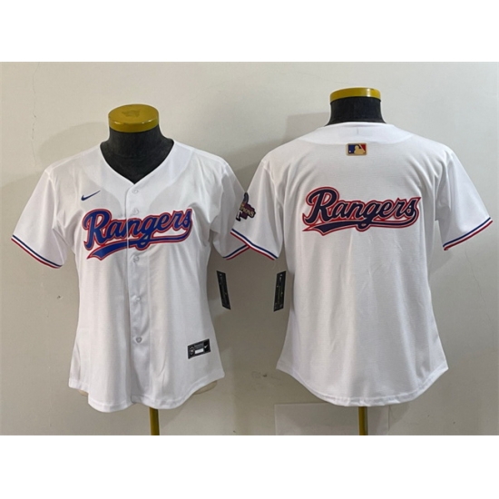 - Women Texas Rangers Team Big Logo White Gold Stitched Baseball Jersey 2