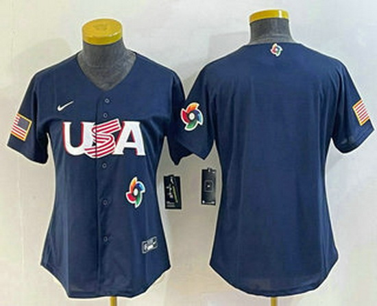- Women's USA Baseball 2023 Navy Big Logo With Patch World Classic Stitched Jersey