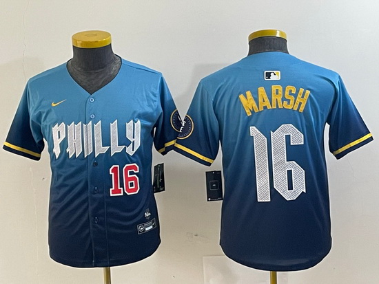- Youth Philadelphia Phillies 3 Bryce Harper Blue 2024 City Connect Limited Stitched Jersey 3