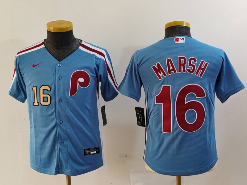 - Youth Philadelphia Phillies 16 Brandon Marsh Blue Cool Base Stitched Baseball Jersey